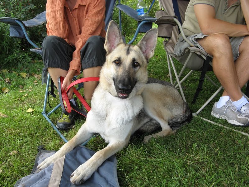 We had more than a few shepherds and shepherd mixes stop by to say hello to fellow shepherd people! Below, a German-lines GSD, who was very confident and friendly (but really, REALLY wanted to get those frisbees away from the disc dogs!).