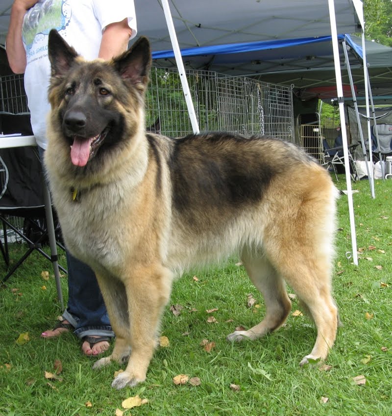 Above, Zak talked to one of our booth neighbors about Shilohs after Leo greeted her. Below, Leo putting on his "Majestic Leo" expression. He enjoyed being out and about with his humans for the morning! In the background you can see the marked fields where they were running flyball and disc dog demos. We were in a great position to watch, and picked up some discs for the dogs to play with at home!